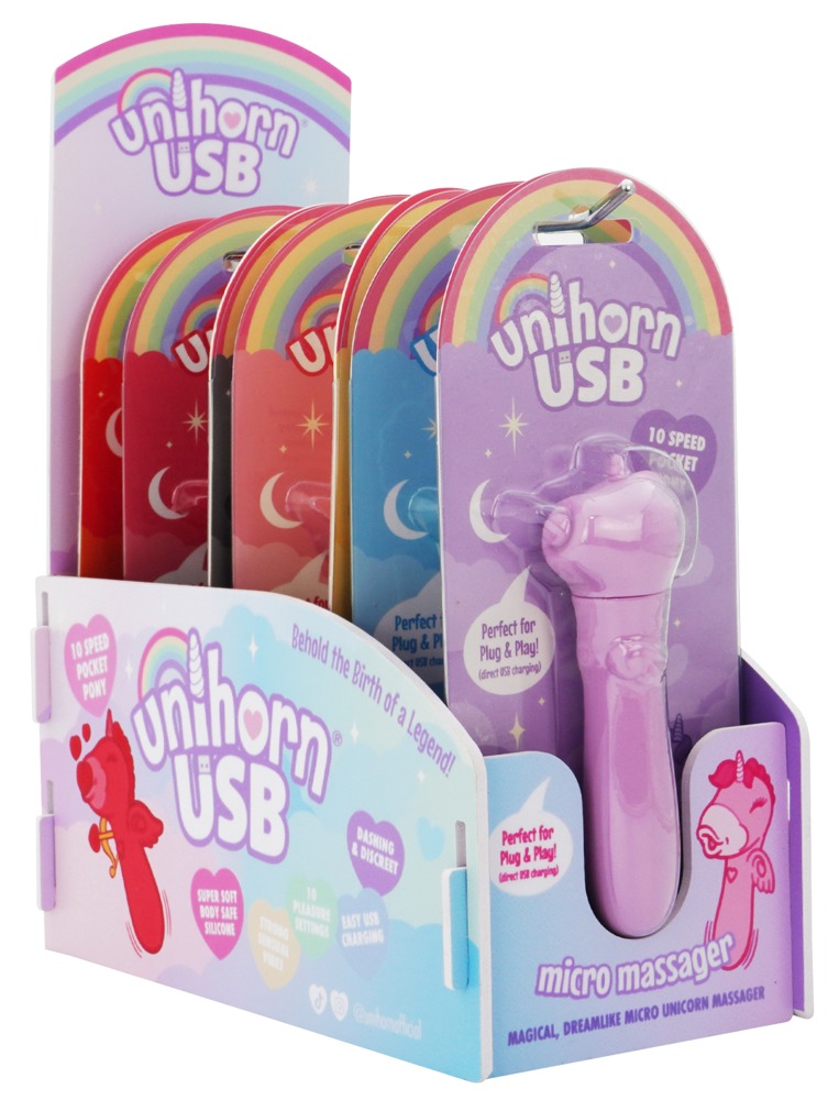 Met dit hoogwaardige display worden de schattige Karma Lilac, Heart Throb en Mount'n Peak USB vibrators van Unihorn perfect gepresenteerd en nodigen ze je uit om ze met plezier uit te proberen.