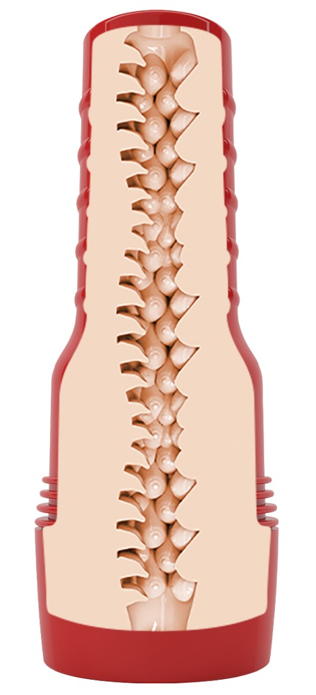 The easy-to-hold masturbator, Evie Akashiya Sho Akuma from Fleshlight, is in a discreet, red case that is in a torch design. The case also has a protective lid too. The opening is a realistic replica of the breathtaking online entertainer's vagina. There are intense and stimulating textures inside (various dots and tongues) for an orgasmic massage during a handjob.
