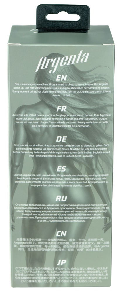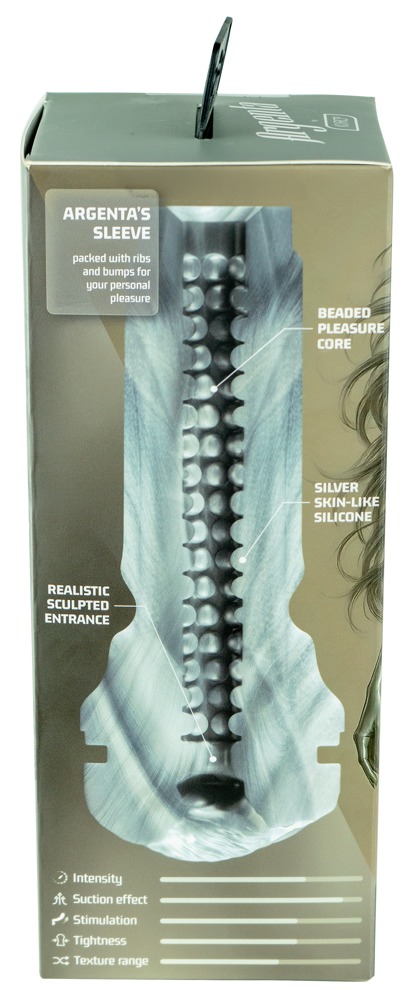 Den sølvfarvede masturbator Feel Argenta Kiros fra Kiiroo kombinerer realistisk erotik med futuristisk cyborgfantasi. Silver sirene Argentas unikke vulva og de forskellige strukturerede knopper inde i hendes fantasivagina giver en intens stimuleringsmassage under et handjob. Det bløde silver skin sleeve kan nemt tages ud af det skridsikre, diskrete hylster for at blive rengjort.
