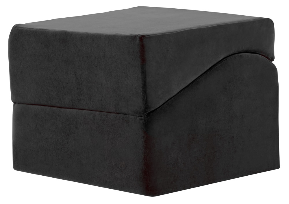 Sort elskovspude - sammenklappet er den en terning og ideel til Doggy Style-stilling. Når den er klappet ud, er den en bekvem elskovsseng, og perfekt til forskellige sexstillinger.