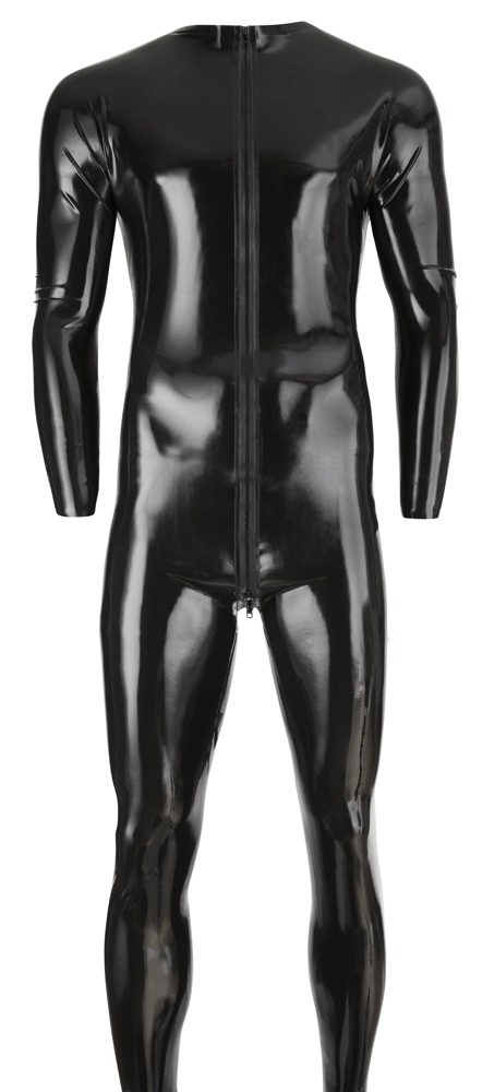 Ettersittende overall med fot og 3-veis glidelås til over baken. Et absolutt glansnummer i fetisjgarderoben.