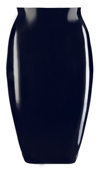 Midjehög, knälång latexkjol som är smalt skuren. Svart. Tjocklek: 0,35 mm. Tillverkad av naturkautschuklatex som kan vara allergiframkallande.
