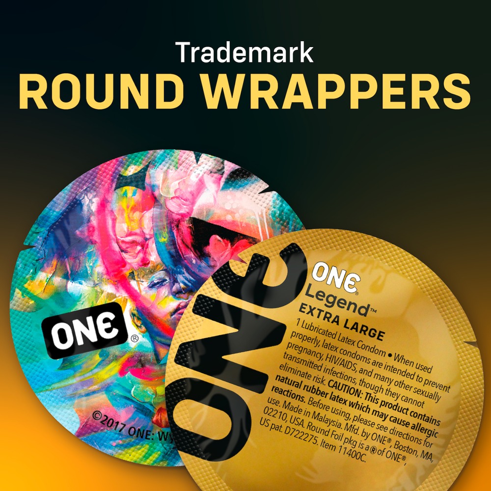 Transparante, extra grote Legend condooms van ONE voor een comfortabele en veilige pasvorm op een grotere penis. Langer en breder dan conventionele condooms. De uitlopende vorm met meer ruimte bij de kop zorgt voor moeiteloos aanbrengen en een veilige pasvorm met optimaal comfort. De ultrazachte Sensatex natuurrubberlatex biedt een natuurlijke sensatie van genot. Veganistisch en GMO-vrij. Bevochtigd met siliconenolie voor perfecte soepelheid.