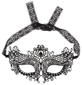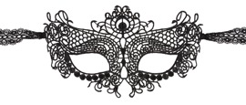 Nydelig, svart maske i delikat og edel broderi. Med åpninger til øynene. Blondebåndet knytes bak. 100% polyester.