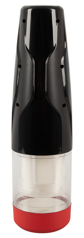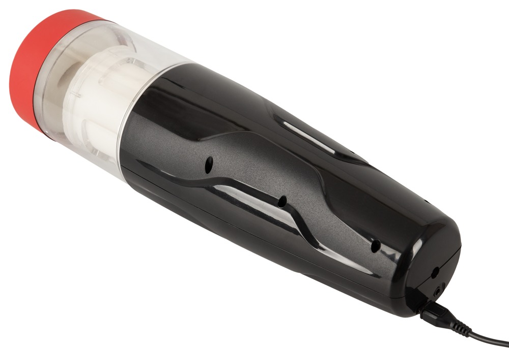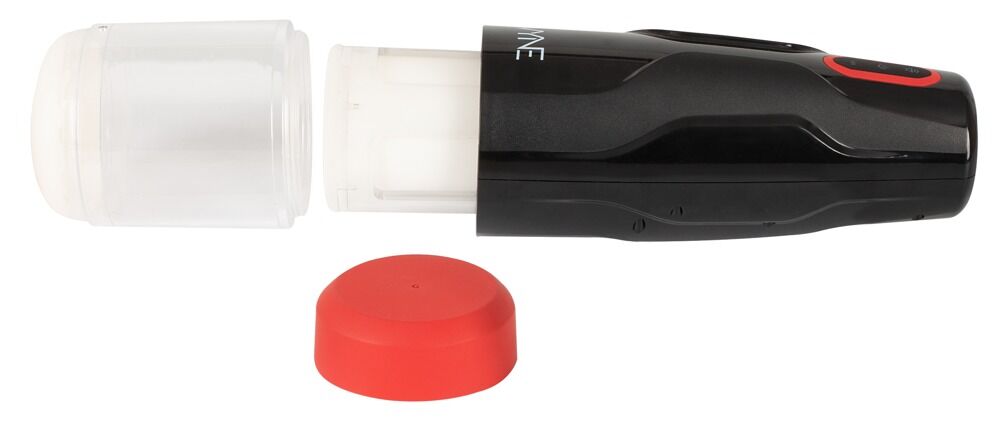 Masturbateur puissant 05 de WYNE, qui gâte le pénis de tous les côtés dans la gaine qui tourne à gauche et à droite avec fonction de poussée (10 modes) - très confortablement en appuyant sur un bouton. Le cylindre transparent éclairé - sur demande - par une lumière LED rouge permet de tout observer de manière excitante. De plus, des gémissements sexy (3 modes) soulignent l'expérience réelle, que l'on peut apprécier discrètement avec les écouteurs fournis.