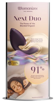 Advertise the new Next Duo from Womanizer with 3D Pleasure Air and G-Spot vibrations now!