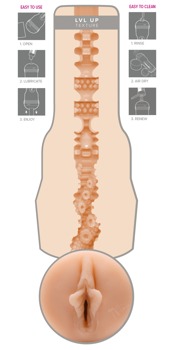 Masturbator Mia Malkova LVL up fra Fleshlight med vaginaåpning i perlemorsfarget hylster. Åpningen er et originalt avtrykk av erotikkstjernen Mia Malkovas vagina. Innvendig har lystkanalen stimuleringsintensiv overflate med nupper i ulik størrelse og rillestruktur. Med lokk og stjernas autograf ved siden av kjønnsleppene. Superskin tekstur.