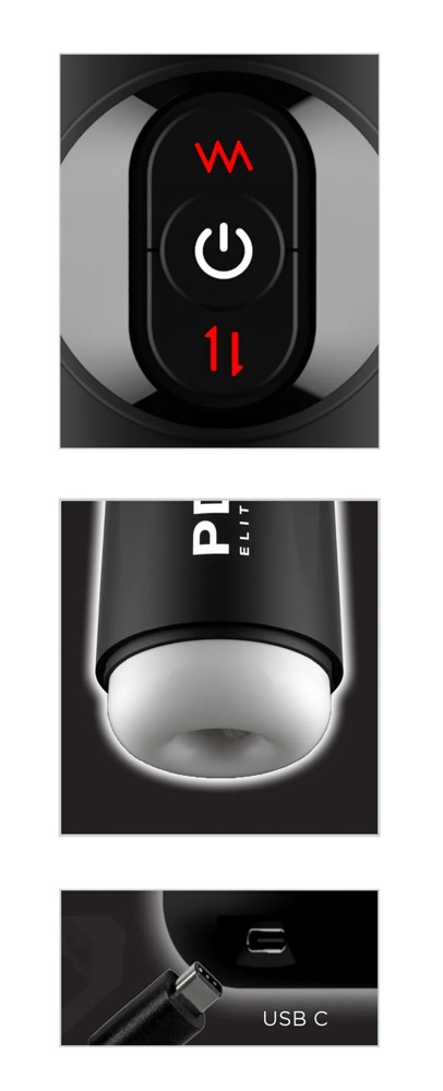 10 vibrationsmodus och 10 stötmodus styrs bekvämt via knapptryck på det LED-belysta kontrollfältet. Hylsan är ultramjuk och har noppor som masserar penisen. Hylsan är i en neutral design och kan tas ut för rengöring.