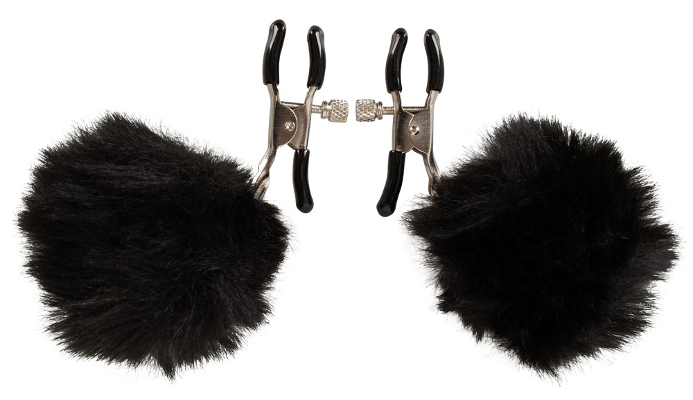 Ces deux pinces à mamelons en métal léger de Magic Shiver tiennent les mamelons en main avec une douceur sensuelle ou une fermeté excitante. Avec leurs peluches noires, elles attirent aussi le regard. L'intensité de la pression des pinces est réglable à volonté grâce à des vis d'ajustement.