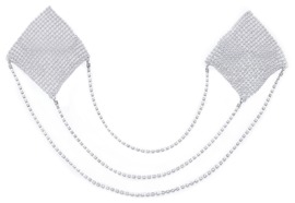 The silver-coloured Nipple Stickers Square from Cottelli ACCESSOIRES are in shiny and glittery diamond shapes with three delicate, swaying connection chains. The nipple stickers can be stuck on easily – they can also be used several times if the protective film is reapplied before they are stored.