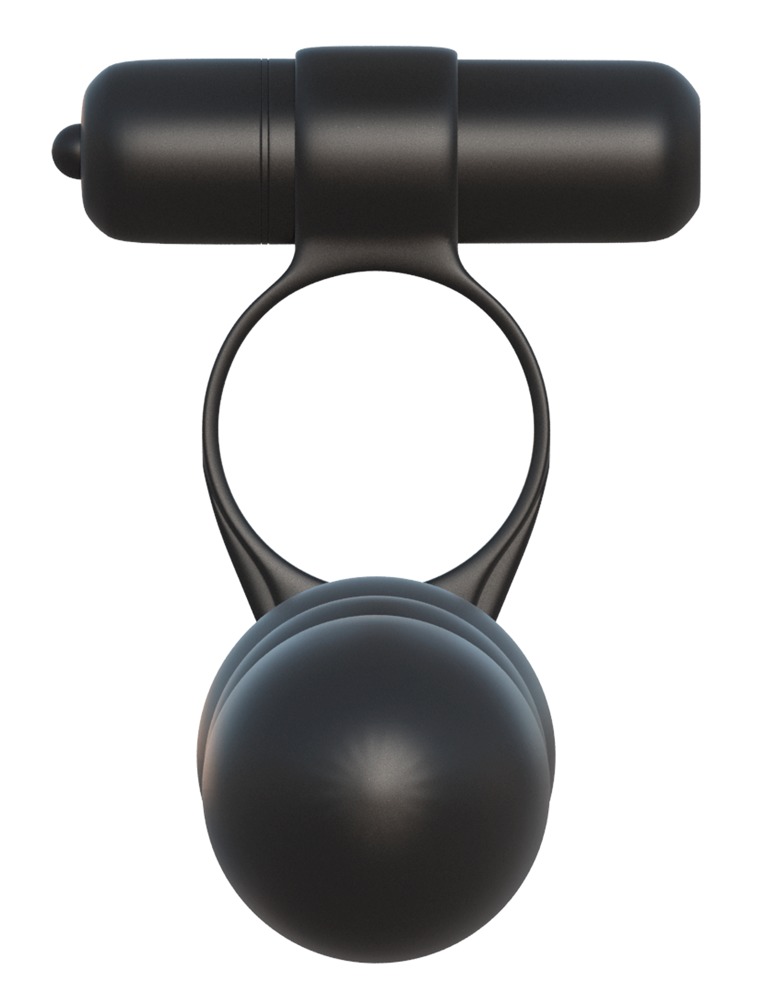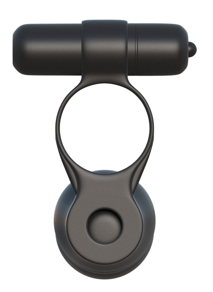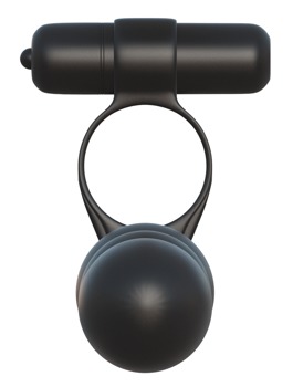 Stramt sittende penisring med uttagbar vibrobullet og fast forbundet analkuledildo. Penisringen tres over lemmet og du er utstyrt med dobbelpenis og vibrerende klitorispirrer, slik at du kan gi trippelsex! Penisringen støtter ereksjonen med blodoppdemmingseffekten. Den lille effektive vibrobulleten settes inn i den øvre åpningen og gir deilig ekstrastimulering. Den er forøvrig vanntett og kan gjerne brukes i badekar eller dusj. Batterier (3 x LR44) til vibrobulleten inklusive.