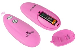 Perfekt anatomisk formet RC Panty Vibrator fra Sweet Smile med vibropenis og klitorispirrenupper i sskjellformet silikonbase. 7 vibrasjonsmodus per praktisk fjernkontroll som du kan overlate en sexpartner. Stillegående, kraftig vibrasjon når og hvor du vil - fullstendig diskret, ingen merker noe. Vibrobulleten er uttagbar og kan brukes separat.