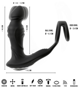 No less than 3 powerful but quiet motors are for the intense functions. The powerful vibrations in the plug's tip and the perineum stimulator are combined and can be controlled in 9 diverse modes. The massaging nodding tip and the moving ring massage are also combined and will provide pleasure in 10 different modes. The vibrations and massages can be controlled separately – either via the remote control or directly on the toy.
