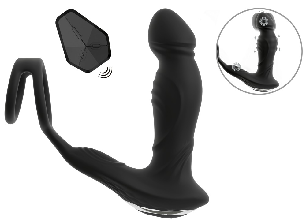 Den spændende, bølgede RC Vibrating Prostate Plug med bevægelige ringe og nikkefunktion fra Rebel kombinerer en sofistikeret prostatavibrator med en perineum lay-on-vibrator og penis-/testikelringe. Den forkæler indvendigt og udvendigt på samme tid. Især prostata stimuleres med en nikkende vibrerende spids (nodding). Synkroniseret med dette masserer bevægelige ringe analkanalen. Samtidig får vibrationerne mellemkødet til at sitre. Intens allround-analsjov, som nemt kan styres med den lille fjernbetjening – til solo- eller partnerleg.