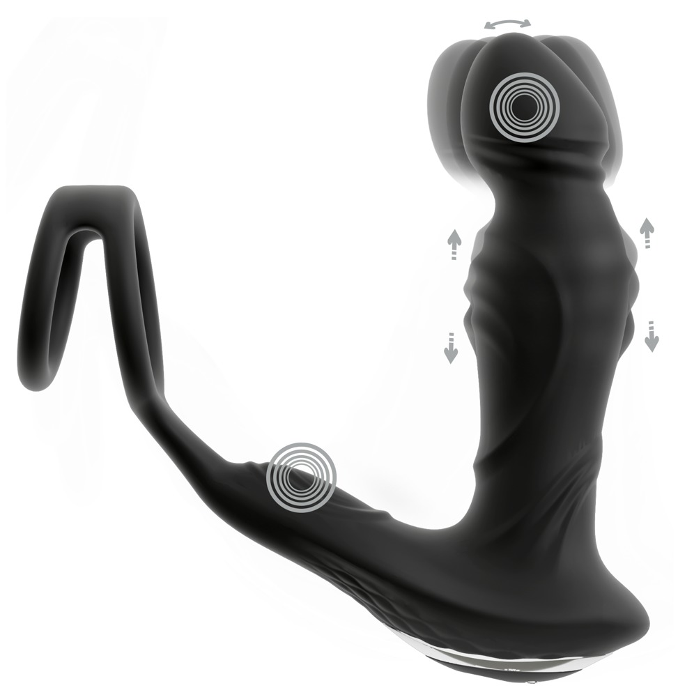 Не менее 3 мощных, тихих моторчиков обеспечивают интенсивные функции. Мощные вибрации в кончике пробки и стимуляторе промежности объединены и могут регулироваться в 9 разнообразных режимах. Массажный кивающий наконечник и массаж подвижным кольцом также объединены и побалуют вас 10 различными режимами. Вибрацией и массажем можно управлять отдельно. Как с помощью пульта дистанционного управления, так и непосредственно на игрушке.