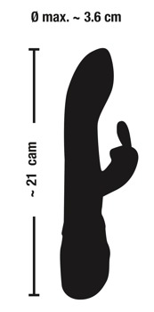 Svart vibrator med 2 kraftfulla motorer, klitorisstimulator i kaninform och 7 vibrationsmodus som styrs via knapptryck. Laddas upp med den medföljande USB-kabeln! Total längd: 21 cm, Ø 3-3,6 cm. Material: silikon, ABS.