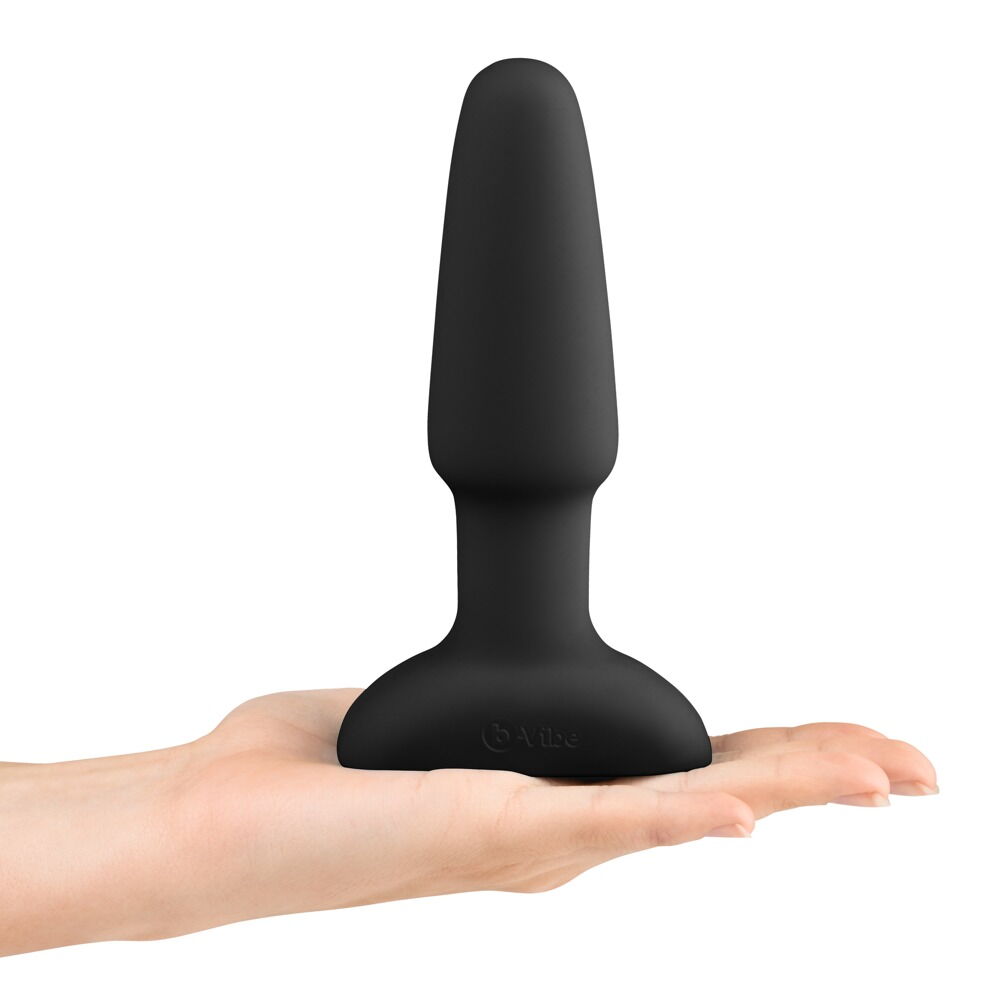 Analplugg rimming fra b-vibe med fjernkontroll som kontrollerer vibrasjonene og rotasjonsperlene i skaftet. Men du kan også justere dem rett på pluggen. Fjernkontrollen har en rekkevidde på opptil 9 m. Med fjernkontrollen kan du også kombinere de ni vibrasjons- og de fem rotasjonsmodusene. Med soft-touch overflate og fot. Inklusive Click'n Charge USB-ladekabel og hardcase til oppbevaring. 15 cm lang, innføringsdybde 12,5 cm, maks diameter 4 cm. Brukertid ved fulladet batteri ca. 1,5 timer. Ladetid ca. 2 timer. Materiale: silikon, ABS. Vi anbefaler at produktet brukes sammen med vannbasert glidegel.