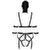 Extravagant remset från Bad Kitty med 4 armbojor och huvudmask. Tillverkad av svart konstläder - mjukt och elastiskt för maximal komfort. Bröstsele med justerbara remmar. Öppen remstring med justerbara strumpeband och avtagbar kedja i grenen. De smala remmarna på underbröstbandets och stringlinningens sidoringar har justerbara kardborrband. Huvudmasken har stor öppning för ögonen.