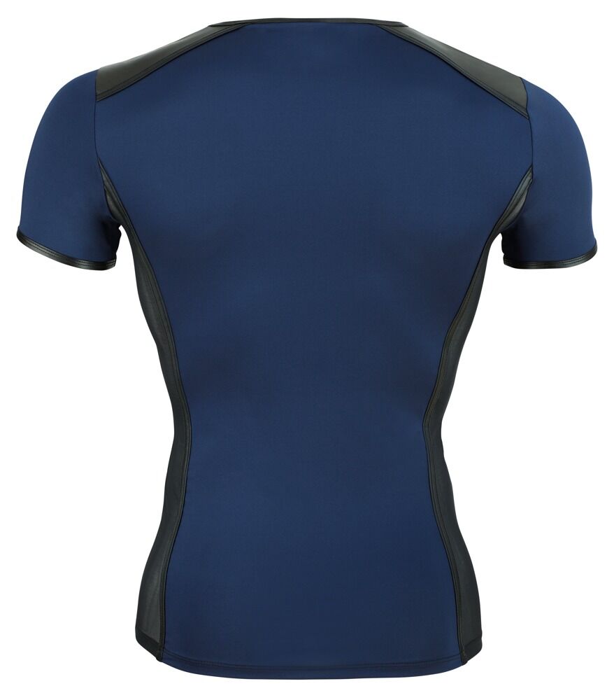 Sensacyjna koszulka w kolorze niebieskim/czarnym. Wyrafinowany jest bardzo elastyczny materiał będący połączeniem nieprzezroczystej, miękkiej mikrofibry i przezroczystej siatki Powernet z detalami w modnym, matowym wyglądzie. Z przodu z ozdobnym sznurowaniem. Na jednym ramieniu z D-ringiem. Plecy nieprzejrzyste.