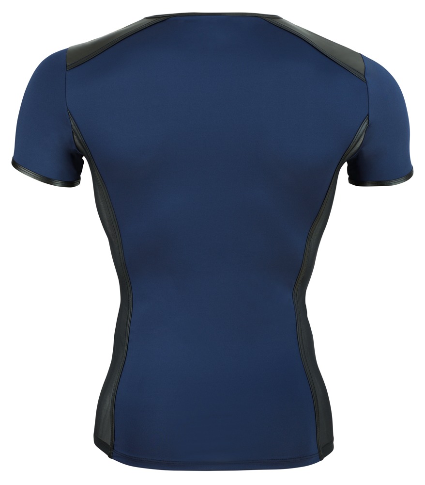Snygg shirt i blått/svart. Läcker, elastisk materialkombination av ogenomskinlig, mjuk mikrofiber och genomskinlig powernet med detaljer i trendig matt look.
