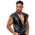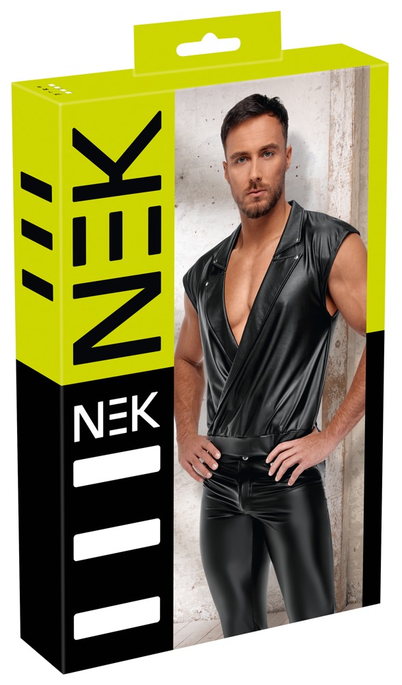 Locker legeres Shirt von NEK im schwarzen edlen Mattlook mit lässig überschnittenem Arm und Stretchbund am Saum. Vorne überlappend offen mit langem, nietenbesetztem Reverskragen. Rundum weich und elastisch für maximalen Tragekomfort.
