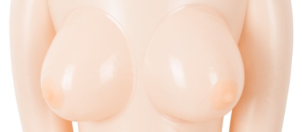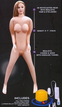 Skal det være med dig? Dejlig, oppustelig, storbarmet elskovsdukke med udformede hænder og fødder. Hendes smukke 3D ansigt, de lange øjenvipper og de flotte, grønne øjne er en rigtig eyecatcher. Med langt. lyst hår. Udtagelig elastisk og noppet vagina- og anusindsats.