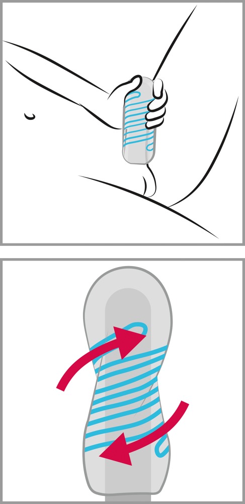 Masturbator spinner transparent et réutilisable de TENGA avec bobine intégrée qui fait tourner le masturbator lorsqu'il est pénétré (mécanisme de bobine interne). Un canal de plaisir structuré par des stimuli distincts.