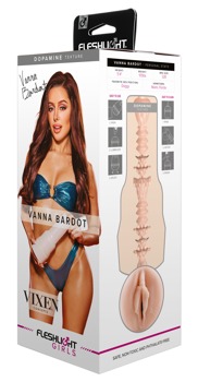 Poręczny masturbator Vanna Bardot Dopamine marki Fleshlight o dyskretnym wyglądzie latarki z oryginalnie wyprofilowanym otworem pochwy gwiazdy erotycznej Vanny Bardot. Bardzo zróżnicowane wnętrze o różnych średnicach jest również bardzo zbliżone do ciasnej pochwy Vanny i zapewnia intensywny, orgazmiczny masaż podczas ręcznej roboty. Wewnętrzny rękaw wykonany z miękkiego jak skóra materiału Superskin jest oznaczony autografem Vanny obok otworu i można go łatwo wyjąć z masturbatora w celu wyczyszczenia.