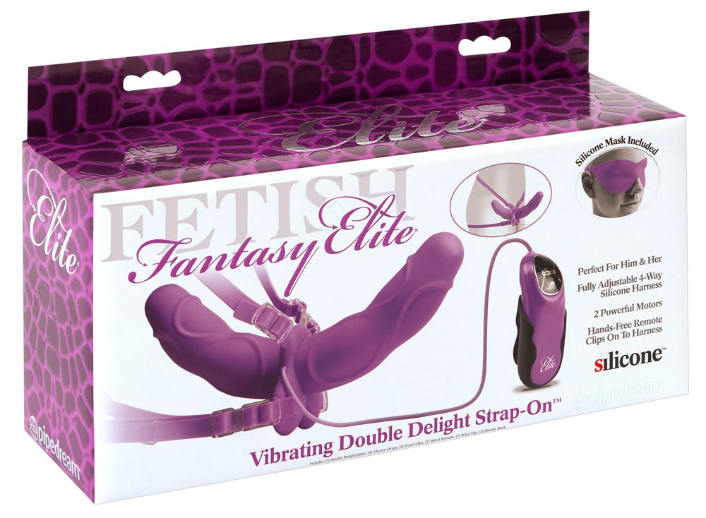 Regulowany strap-on z wyjmowanym, teksturowanym podwójnym wibratorem. Wygodna obsługa za pomocą sterowania przewodowego. W zestawie maska na oczy.