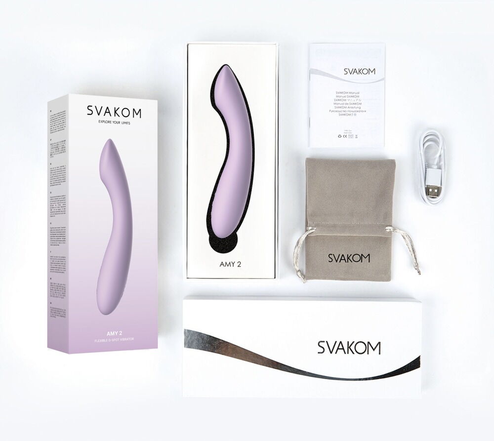 The Amy 2 vibrator from SVAKOM is in a wonderfully ergonomic curved shape and it also has a flattened tip which is perfect for spot-on pleasure spot stimulating in and on the body. The flexible silicone vibrator is velvety soft and this means that it is very easy to hold and it also slides over the skin and into intimate depths almost on its own as well. This mean that the light but intense vibrator can also be easily integrated into solo or couple's fun.