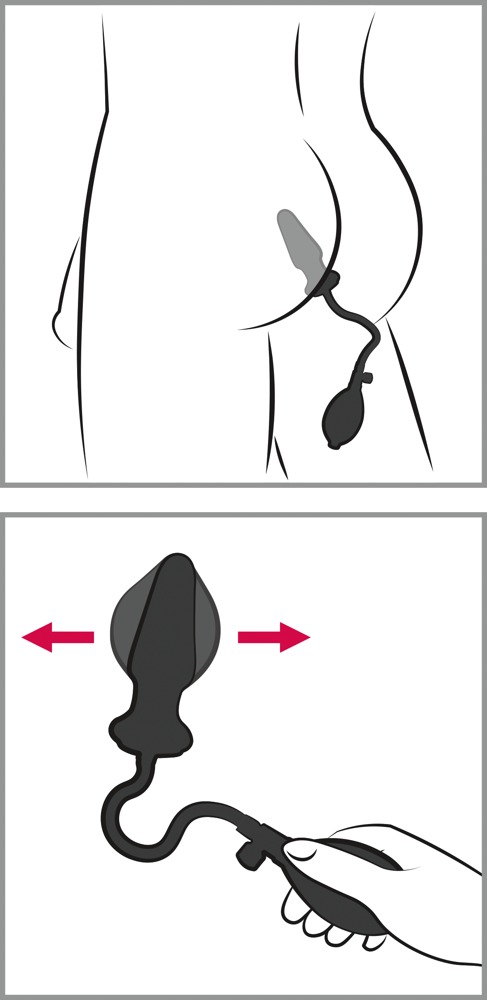 Mince et étroit, il glisse facilement en vous. Maintenant vous pouvez le gonfler avec la pompe maniable à la taille souhaitée - chez ELLE, il encourage les orgasmes en appuyant sur la vessie, chez LUI il appuie contre la prostate pour le même effet! Astuce : Le plug anal gonflé dans l'anus ... le vagin redevient alors virginalement étroit! Recouvert de latex glissant, noir. Longueur env. 13 cm, ø 1,5 - 3,5 cm (extrêmement gonflable).