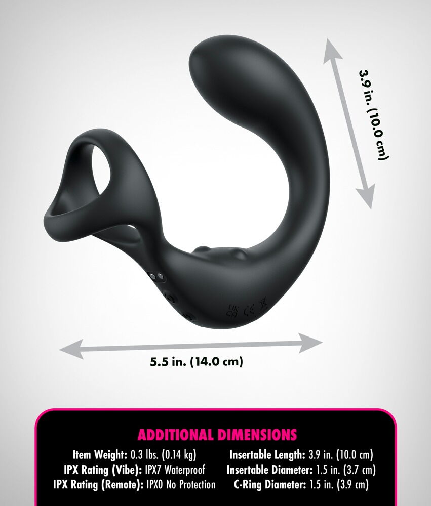 Ass-Gasm Taint-Alizer fra Anal Fantasy Elite Collection kombinerer en prostatavibrator med den innovative swirling perineum stimulator og en penis/testikelring. Intens allround-analsjov, der er nem at styre med den praktiske lille fjernbetjening – til solo eller spændende partnerleg.