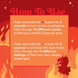 The Cute Blaze Diablo (Swishing Tongued Vibrator) lay-on vibrator from Unihorn is in the shape of a little unicorn. The soft, easy-to-hold silicone toy provides swishing magic between the thighs. Its soft, small, double tongue swishes up and down and back and forth extremely quickly to pleasure the clitoris. Furthermore, intense vibrations support this unique stimulation. The quiet, deluxe dual motor provides reliable power. The 10 different modes for the tongue movement and vibrations can be controlled separately at the push of a button. A magical toy for versatile play – alone or with a partner, at home or on the go!