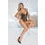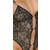 Elegante body erótico de Abierta Fina hecho de encaje floral negro con hilos metálicos dorados entretejidos. La parte delantera, completamente abierta, sólo está sujeta por 3 barras decorativas de purpurina. También elementos de purpurina en la parte delantera de los tirantes ajustables. En la espalda casi libre y sobre el trasero libre, unos tirantes elásticos ajustables sobre anillas doradas garantizan un ajuste perfecto.