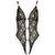 Elegante body erotico di Abierta Fina in pizzo floreale nero con fili metallici dorati intrecciati. La parte anteriore, completamente aperta, è tenuta insieme solo da 3 barre decorative di brillantini. Elementi glitterati anche sul davanti delle spalline regolabili. Nella parte posteriore quasi libera e sopra lo slip libero, cinghie elastiche regolabili su anelli dorati assicurano una vestibilità perfetta.