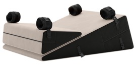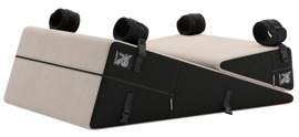 There are 2 different-sized, ergonomic wedge-shaped sex cushions in the Bondage Wedge/Ramp Combo set from Liberator. The set also includes 4 removable restraints for the hands and feet. The set has soft microfibre covers that can stick to each other without slipping – this means that the small wedge-shaped cushion can be placed anywhere on the large wedge-shaped cushion. Both of the cushions can also be used individually. The two firm cushions are the perfect and comfortable support for sex positions and oral play.