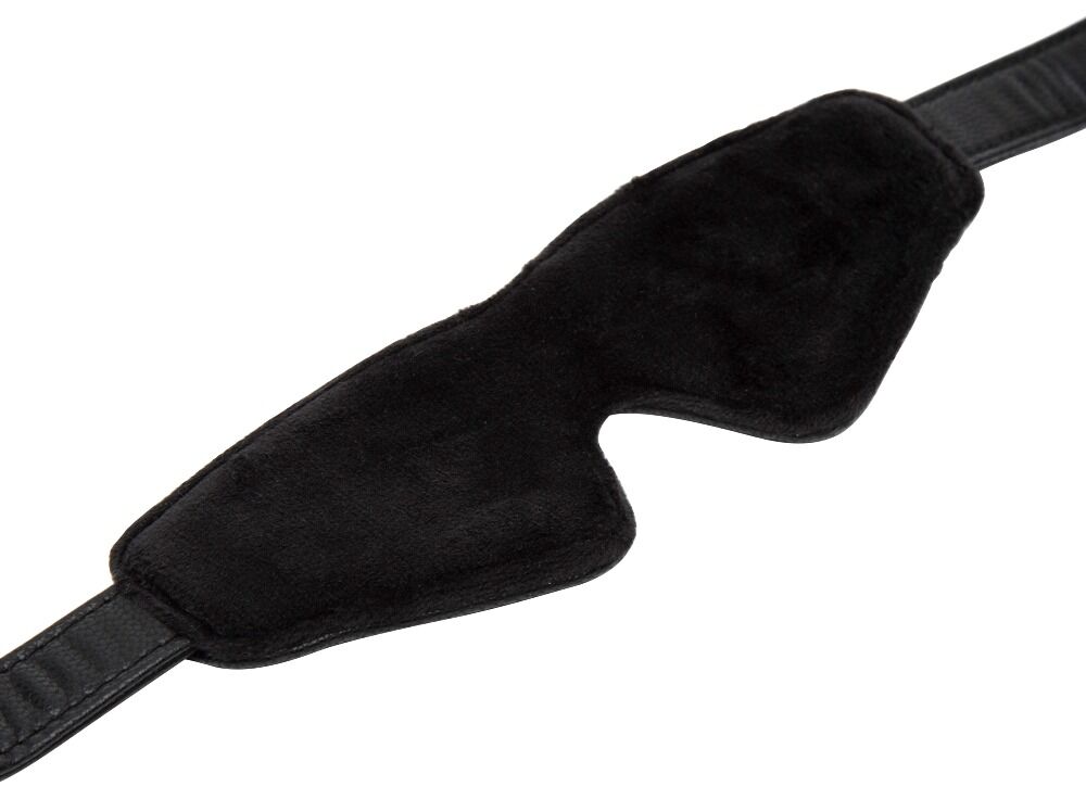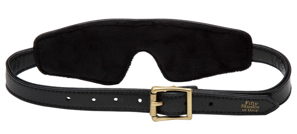 The stylish Bound to You blindfold from Fifty Shades of Grey is made out of high-quality imitation leather and it also has an antique gold-colored fastener as well. It is opaque and it is comfortable because it has velvety soft velour material that is padded.