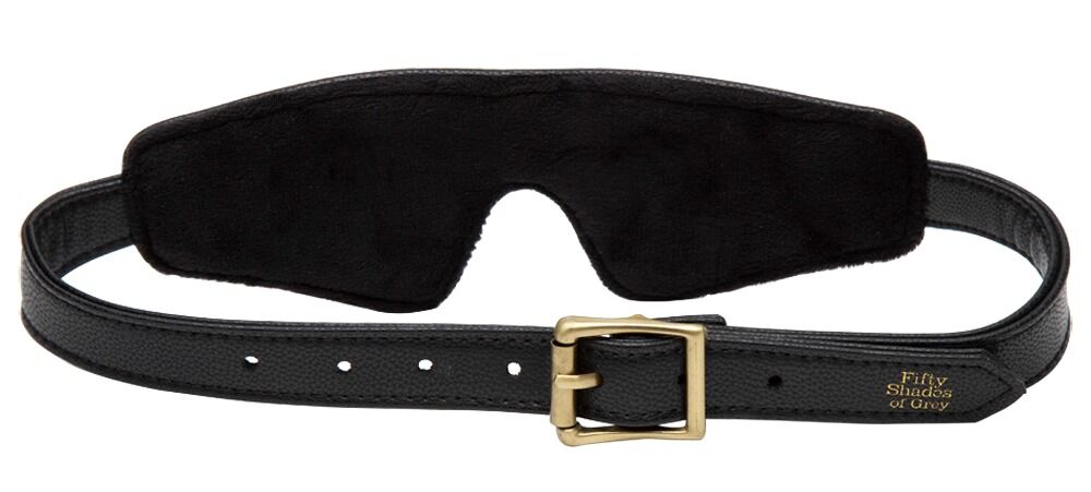 Stilfuld blindfold Bound to You Blindfold fra Fifty Shades of Grey fremstillet af kunstlæder af høj kvalitet med en elegant antikguldfarvet spændefastgørelse. Absolut uigennemsigtig og behageligt polstret med blødt silkeagtig velour.