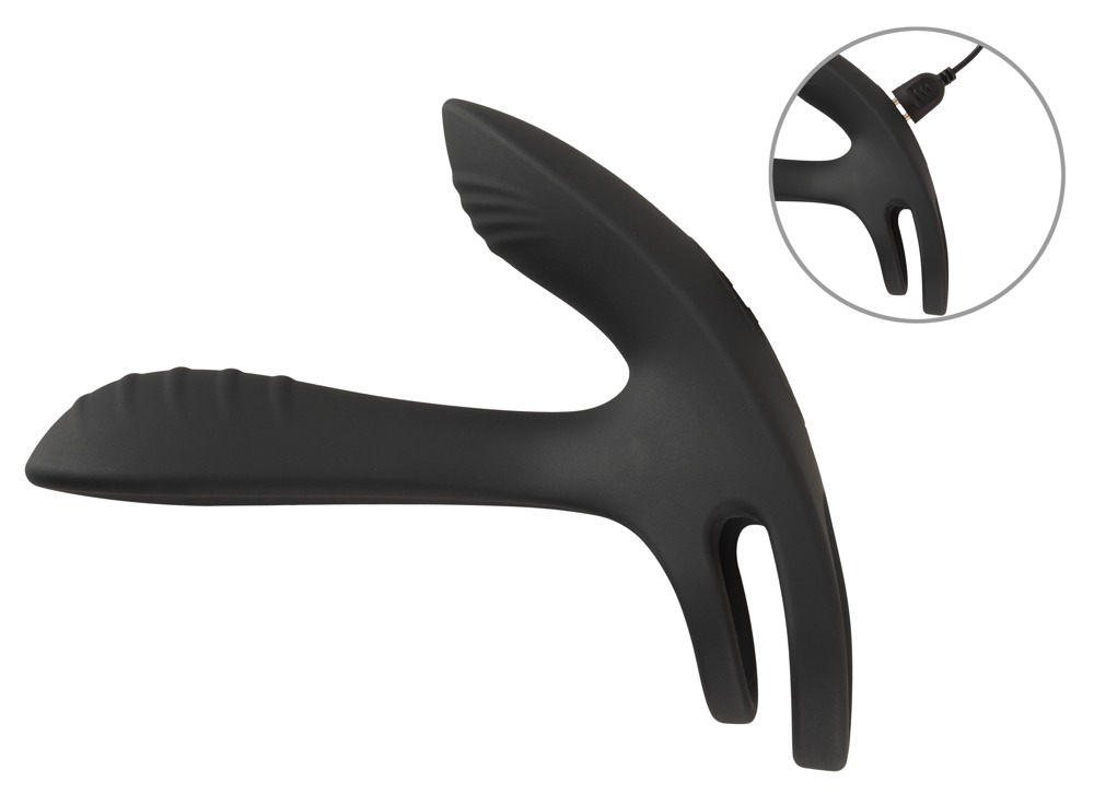 The couple's vibrator (Vibrating Cock Ring) combines a cock/ball ring with a flexible vibrator and a clitoral stimulator. The stretchy rings strengthen the penis and testicles, while the flat vibrator nestles on top of the penis. This increases the girth of the penis meaning that both partners enjoy intense vibrations during sex. In addition to that, the clitoris gets pleasured by vibrations in 10 modes. The modes can be easily controlled at the push of a button. It is made out of silicone. Rechargeable – USB cable included.