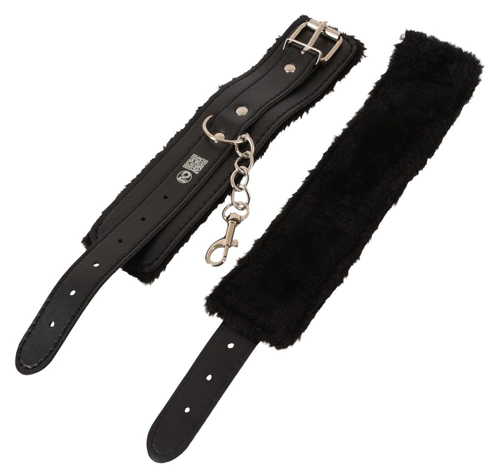 The stylish faux leather handcuffs can be quickly put on and adjusted to fit with their buckle fasteners. They have soft padding for maximum comfort. Made out of PVC and metal.
