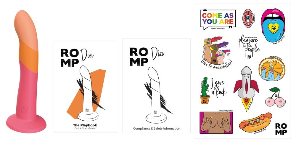 Läckra dildon Dizi från ROMP i snygga färger. Med stark sugfot som sitter säkert på alla släta ytor och som möjliggör en frihändig njutning. Dildon är kompatibel med strap-ons och harnessar. Den är även perfekt böjd så att G-punkten och prostatan lätt kan nås och stimuleras. Dildon är tillverkad av sammetslent silikon som ger den en styvhet och hårdhet utan att tappa flexibilitet. I nedre delen av skaftet är den ihålig så att man kan sätta i en vibrobullet (ingår ej).