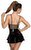 Ädla broderier på kuporna, pyntränder av lack och en genomgående dragkedja framtill gör den sexiga looken perfekt.