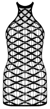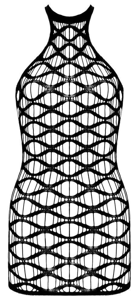 I denne vekker du erotiske fantasier! Kort, skulderfri kjole fra Cottelli FANTASY i sexy, grovmasket nettingstoff. Det sømløse, mykt elastiske materialet gjør kjolen til en behagelig drøm å ha på. Matchende strengtruse i blonde medfølger.