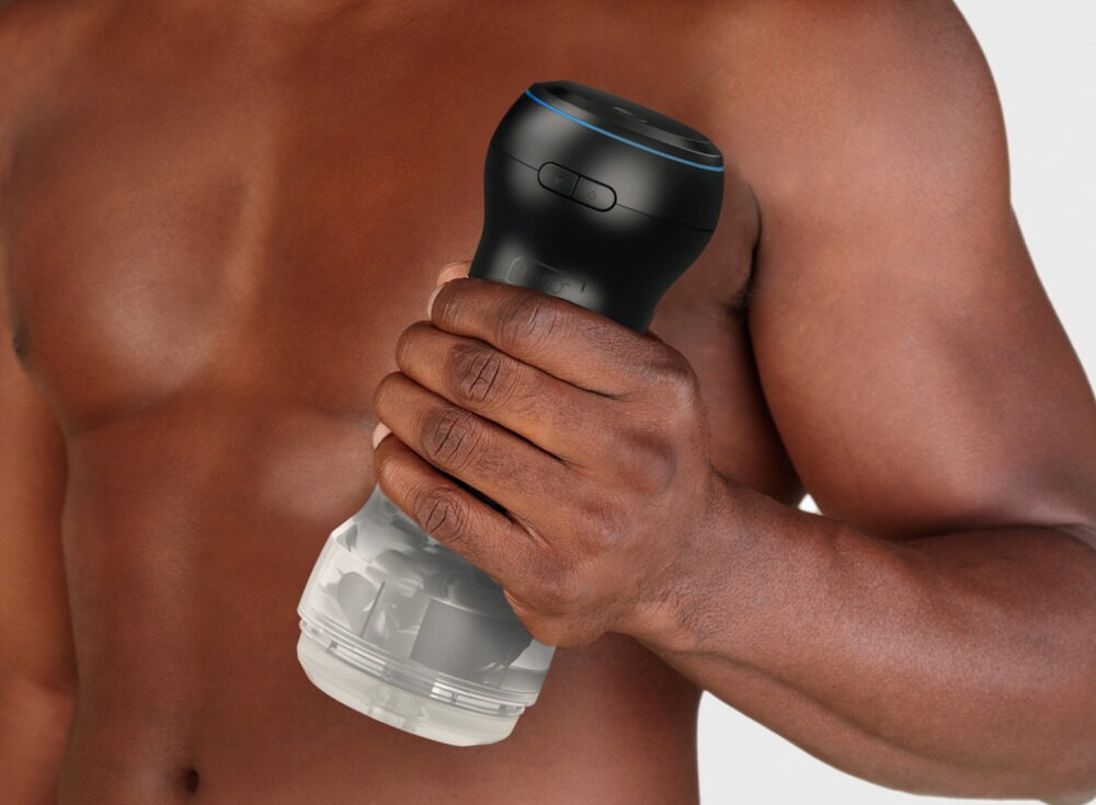 The PowerBlow from Kiiroo fits perfectly on the Feel Pocket Stroker Crystal to upgrade the handy masturbator and turn it into the ultimate blowjob machine. The PowerBlow suction attachment is simply screwed on to the masturbator. It will also fit on every other stroker masturbator from Kiiroo. The various suction modes can be controlled manually at the push of a button directly on the PowerBlow. They can also be controlled via Bluetooth/Wifi/app for fully-automated and interactive pleasure. Individual blowjob patterns, remote play and remote-controlled interactions with a partner are possible via the FeelConnect app. VR videos can be watched via FeelMe AI.