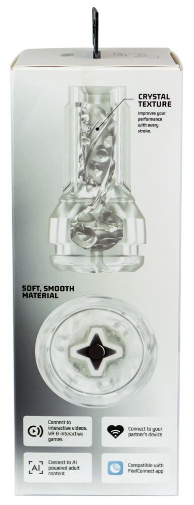 The easy-to-hold masturbator, Feel Pocket Stroker Crystal from Kiiroo, is in a discreet neutral transparent look. With an exciting texture inside for an intense penis massage. The inner sleeve is made out of soft, skin-like Superskin material and can be easily removed from the case for cleaning. 16.4 cm long, outer Ø 5.8–8.4 cm, inner Ø 2 cm–4.5 cm (flexible). ABS, TPE.
