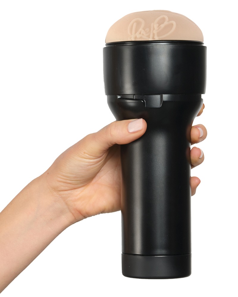 Mærk Rae Lil Black masturbator fra Kiiroo med original støbt vulva af den erotiske stjerne Rae Lil Black. Det meget forskelligt strukturerede indre kommer også meget tæt på Rae Lils vagina og giver en intens massage under et handjob. Det indvendige sleeve af hudlignende, blødt Superskin-materiale er endda signeret med Rae Lils autograf ved siden af vulvalæberne. Sleevet kan nemt tages ud af det skridsikre, diskrete hus for at blive rengjort.