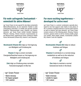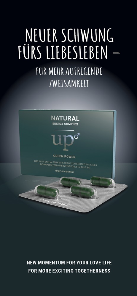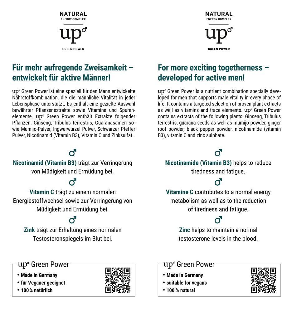 Die B2C-Markenbroschüre mit allen wichtigen Informationen zu den neuen up Green Power Kapseln mit dem Natural Energy Complex für neuen Schwung im Liebesleben.
