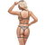 Conjunto de arnés negro de 3 piezas de Cottelli LINGERIE con arnés de pecho y cadera que incluye un pequeño tanga. Ambos arneses están hechos de correas elásticas suaves, sedosas y brillantes y anillos de conexión de color plateado. Las correas son multiajustables para un ajuste perfecto. Top con cierres de gancho en el cuello y la espalda.