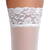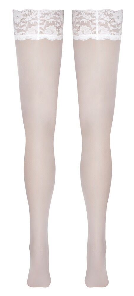 Vita stayup-strumpor från Cottelli LEGWARE med 9 cm bred spetskant med silikonförstärkning invändigt som gör att strumporna sitter bra och inte halkar ner. 20den. Oeko-tex certifierade.