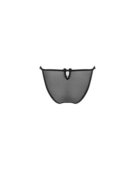 Der schwarze Slip Ivannes von Obsessive ist ein zarter Traum aus Spitze und Mesh. Hingucker ist das kleine Silberdetail vorne und im Cut-out über dem Po.
